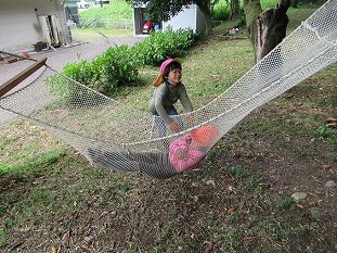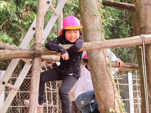 朝は寒かったのですが、太陽が微笑んでくれたおかげでとても暖かい日になり、年長児は森の中で元気いっぱい遊びました。ブランコにシューター、改良された(?)ハンモック、今回新しく作ってもらったロープ登りなど、子どもたちは、果敢に挑戦しました。終わりに「今日たのしかった人?」の質問に全員が「はーい!」と手を挙げ、一人ずつ「たのしかったこと」を葉っぱのマイクで話しました。こどもたちの顔は満足感と達成感であふれていました。