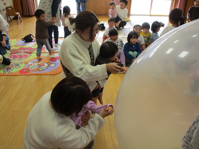大きな風船にタッチ