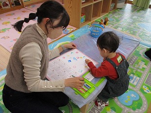 ママと一緒に絵本を見るよ